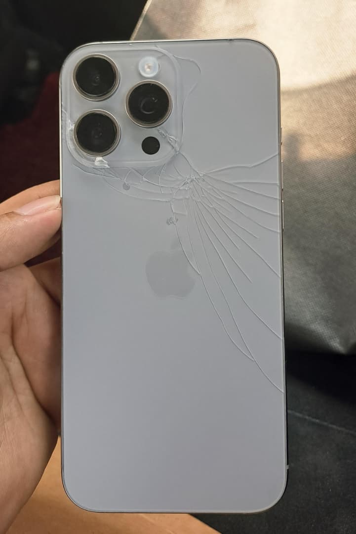 This iPhone 16 Pro Max came from Sungai Besi with a cracked back glass.